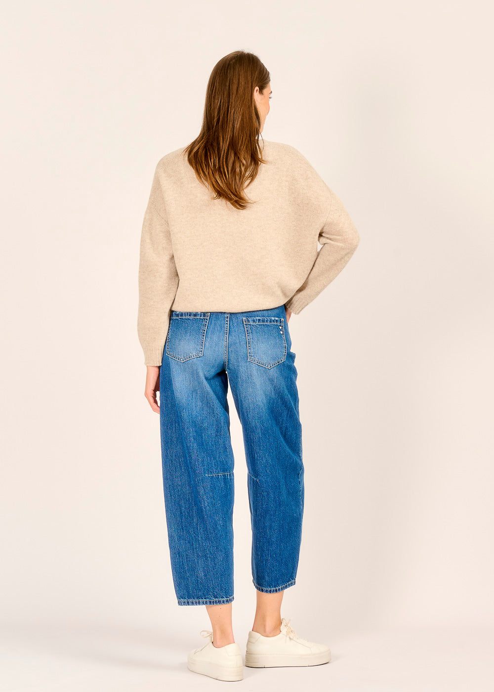 Die Jeans von PLEASE in der Farbe Blu ist ein absolutes Fashion-Statement für einen lässigen und trendigen Look. Ihr besonderer Schnitt ist das Highlight: Oben schmal geschnitten, wird sie zum Bein hin weit und läuft am Knöchel wieder schmal zu. Dieser sogenannte Barrel-Schnitt zaubert eine coole Silhouette, die sofort ins Auge sticht. Kombiniere sie mit Sneakers für einen entspannten Alltagsstil oder mit Absatzschuhen für ein urbanes Outfit.