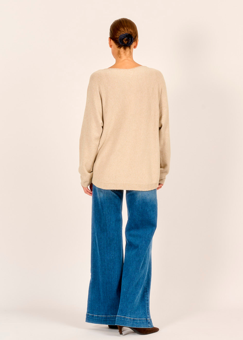 Ein luxuriöses Basic für deine Garderobe: dieser edle Pullover in hellem Beige. Der weiche Feinstrick umspielt deine Figur und fühlt sich wunderbar leicht auf der Haut an. Sein schlichter, eleganter U-Boot-Ausschnitt setzt dein Dekolleté dezent in Szene. Er ist der perfekte Begleiter für einen mühelos schicken und zeitlosen Look.